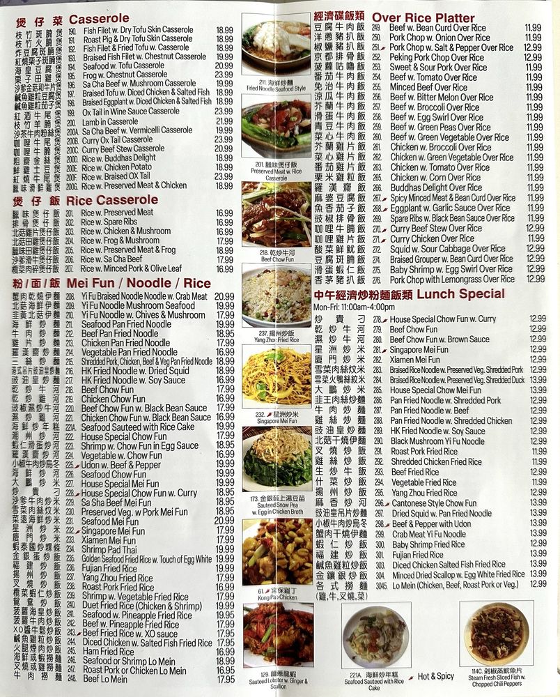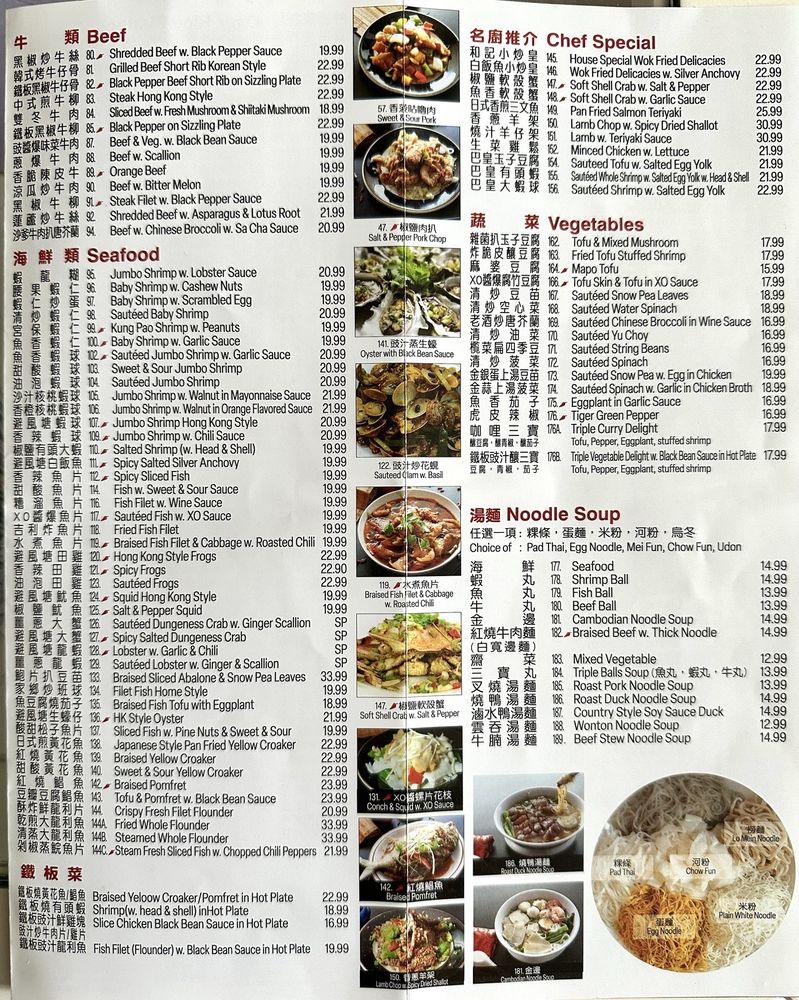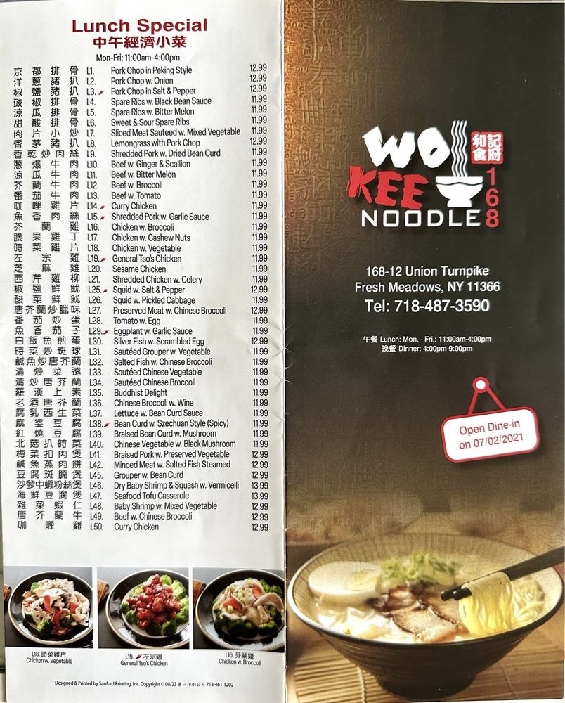 Wo Kee Noodle in Fresh Meadows, NY offers a diverse menu that includes traditional Szechuan dishes, comfort Chinese food, and excellent hot & sour soup. Customers rave about the generous portions, flavorful dishes like Peking pork and duck, and the reliable service. The restaurant provides a casual dining atmosphere with options for vegetarians and families. Standout dishes include the fish maw soup, beef chow fun, and Cambodian noodle soup. The attentive staff, gender-neutral restrooms, and diverse menu make Wo Kee Noodle a must-visit for authentic Chinese cuisine. Don't miss out on their crispy filets, sweet and sour fish, and the 3-meat set for takeout. Overall, Wo Kee Noodle is a reliable spot providing delicious meals with a welcoming ambiance.